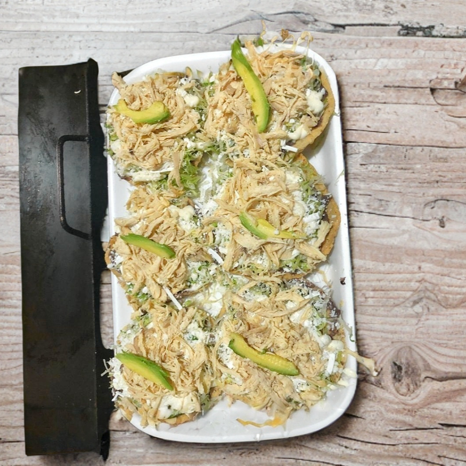 Queso, Chicharron, Champiñones, Tierritas, Rajas con crema, papas con chorizo, , bistec con nopales,