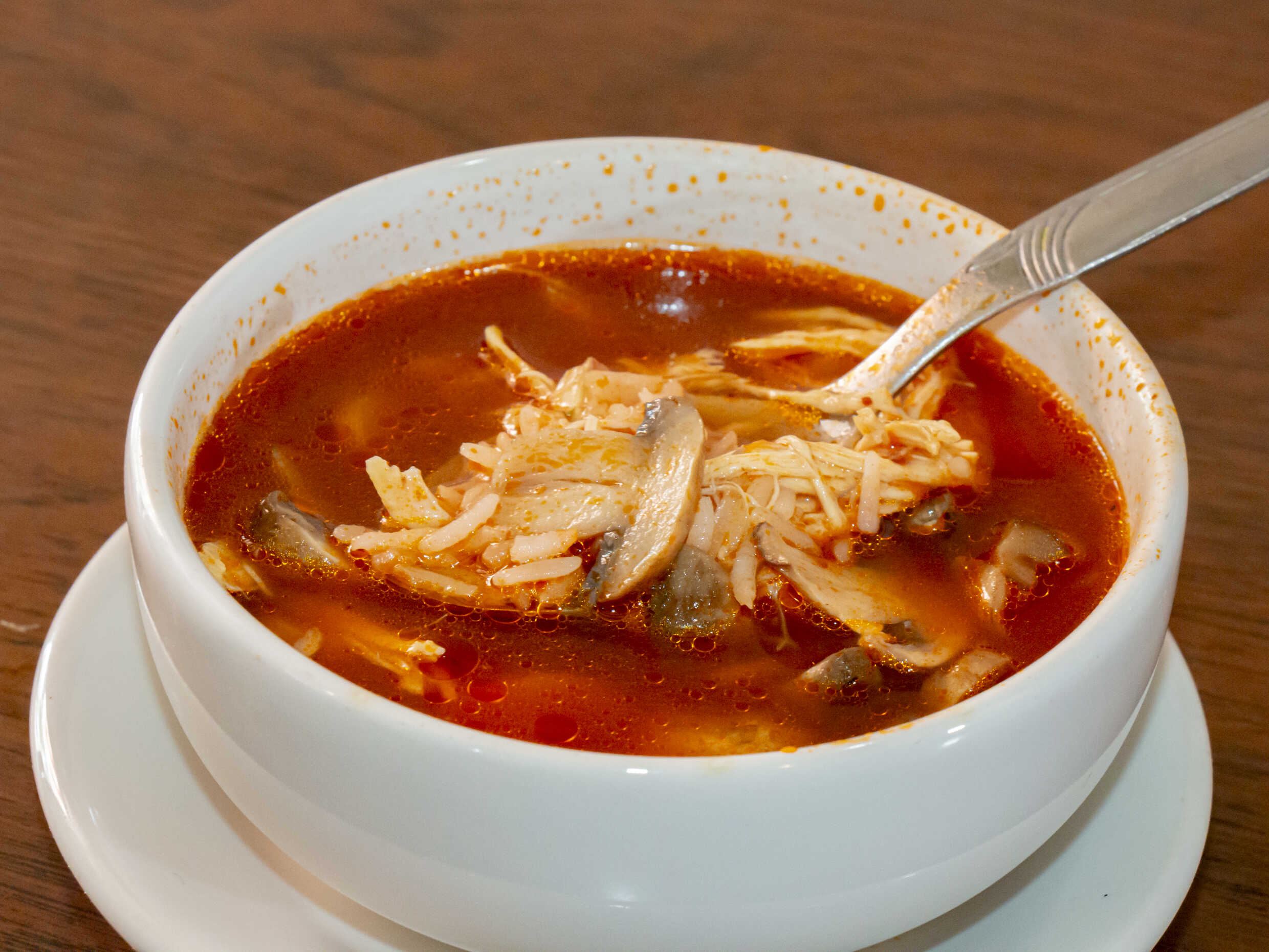 Caldo de hongo con arroz y pollo