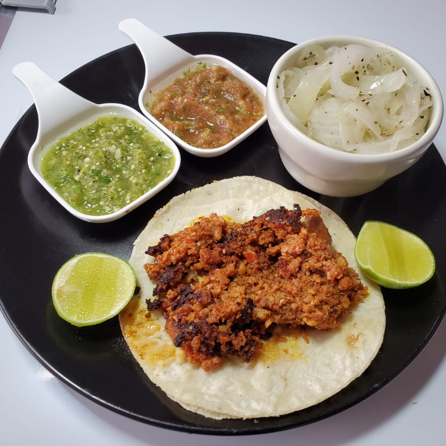 1. taco de longaniza c/queso 1. taco de enchilada c/queso 1. taco de roastbeef c/queso. Con doble tortilla acompañados de cebollas caramelizadas y salsa a elegir.