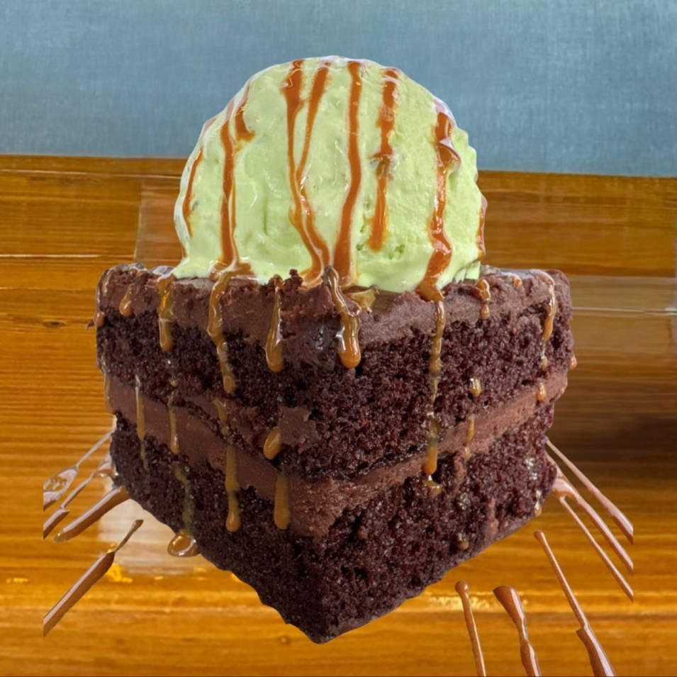 Brownie de la casa + malvadiscos + nuez + dulce de leche + helado de mazapán