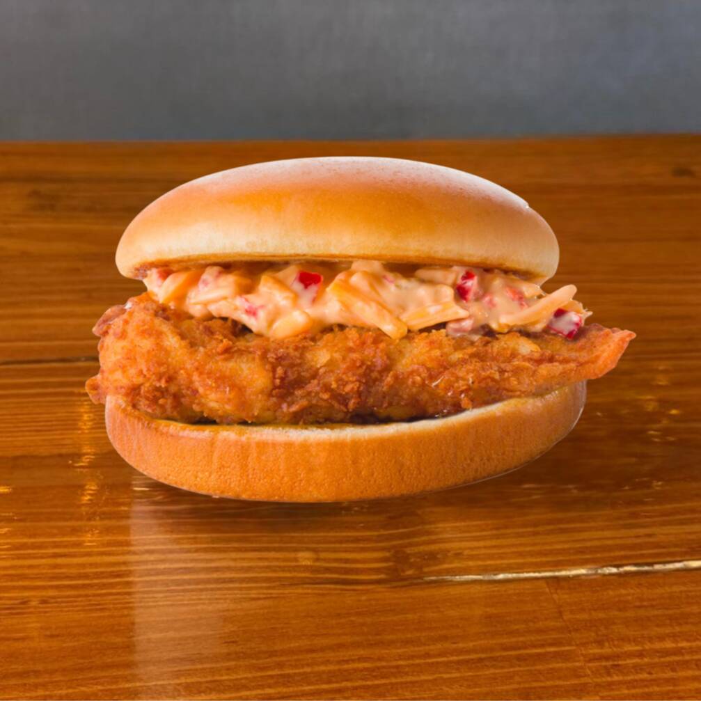 150g de pollo crunchy + queso cheddar + pan de la casa + aderezo chicken pimento