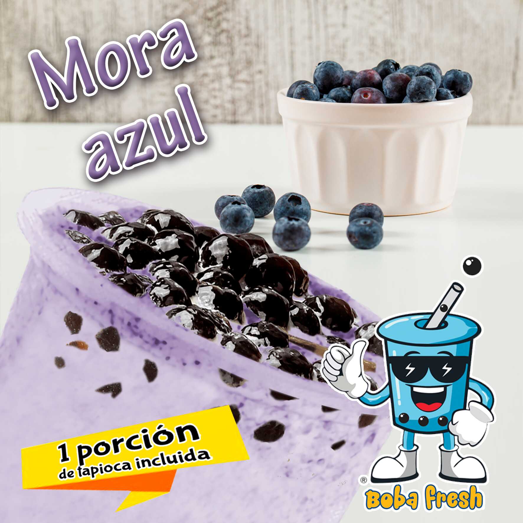 Frappe: Leche, yogurt, mora azul. 1 porción de tapioca incluida.