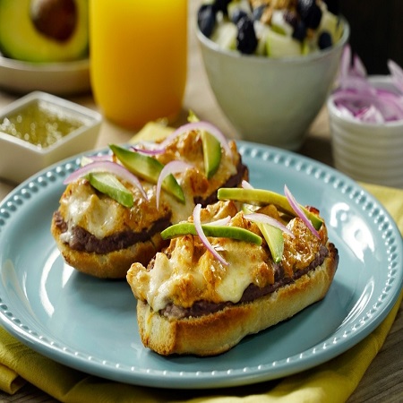 Delicios molletes tradicionales con pollo a la mayonesa de chipotle
