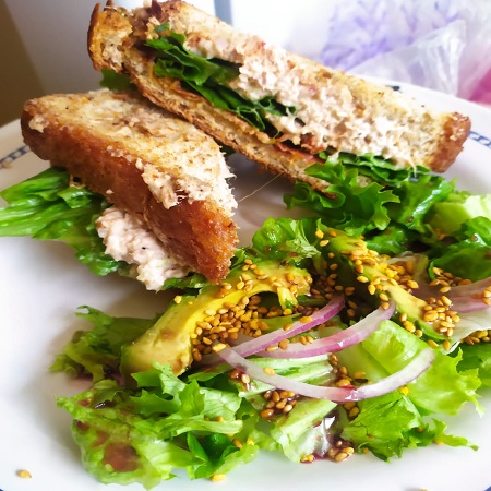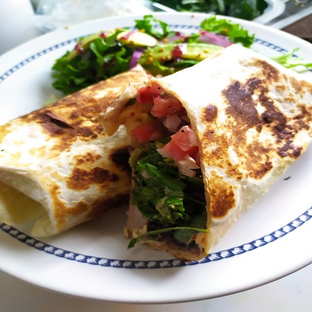 Pechuga asada, pepino, jitomate, aguacate, lechuga, cebolla, queso y aderezo especial. Acompañado de ensalada.