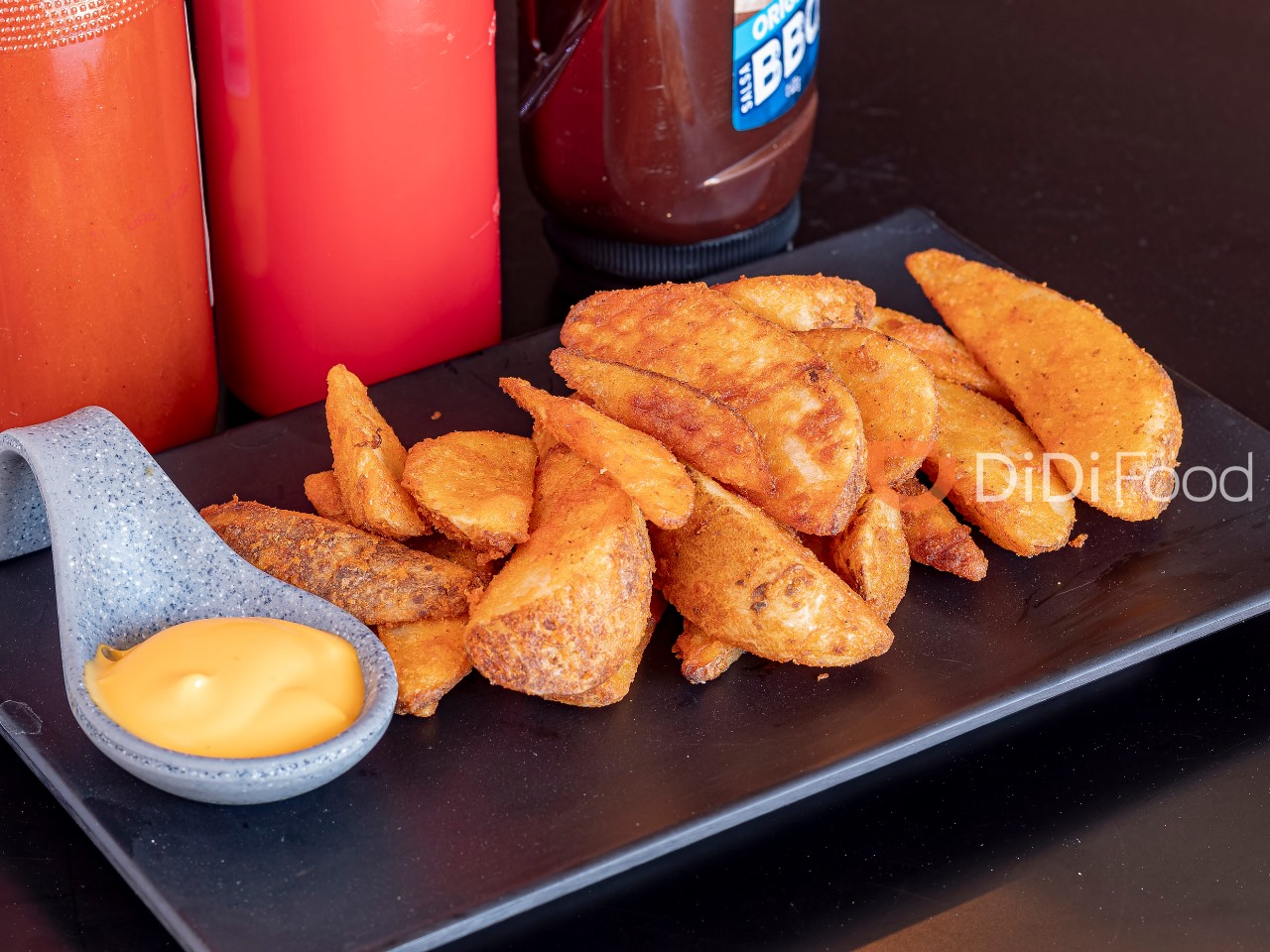 Orden de 280 gr contiene queso amarillo, salsa valentina, cátsup, los cuales se ponen a parte.