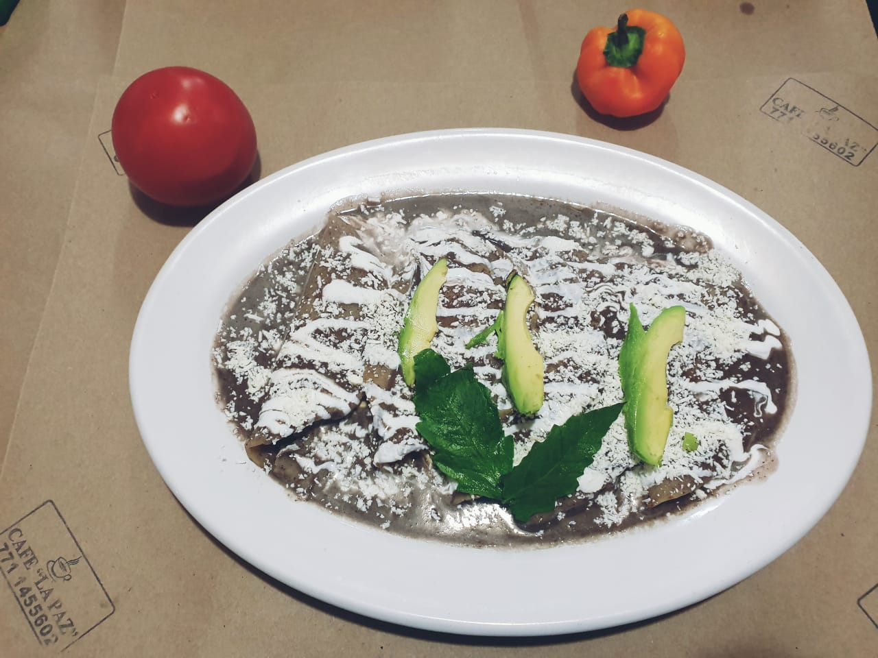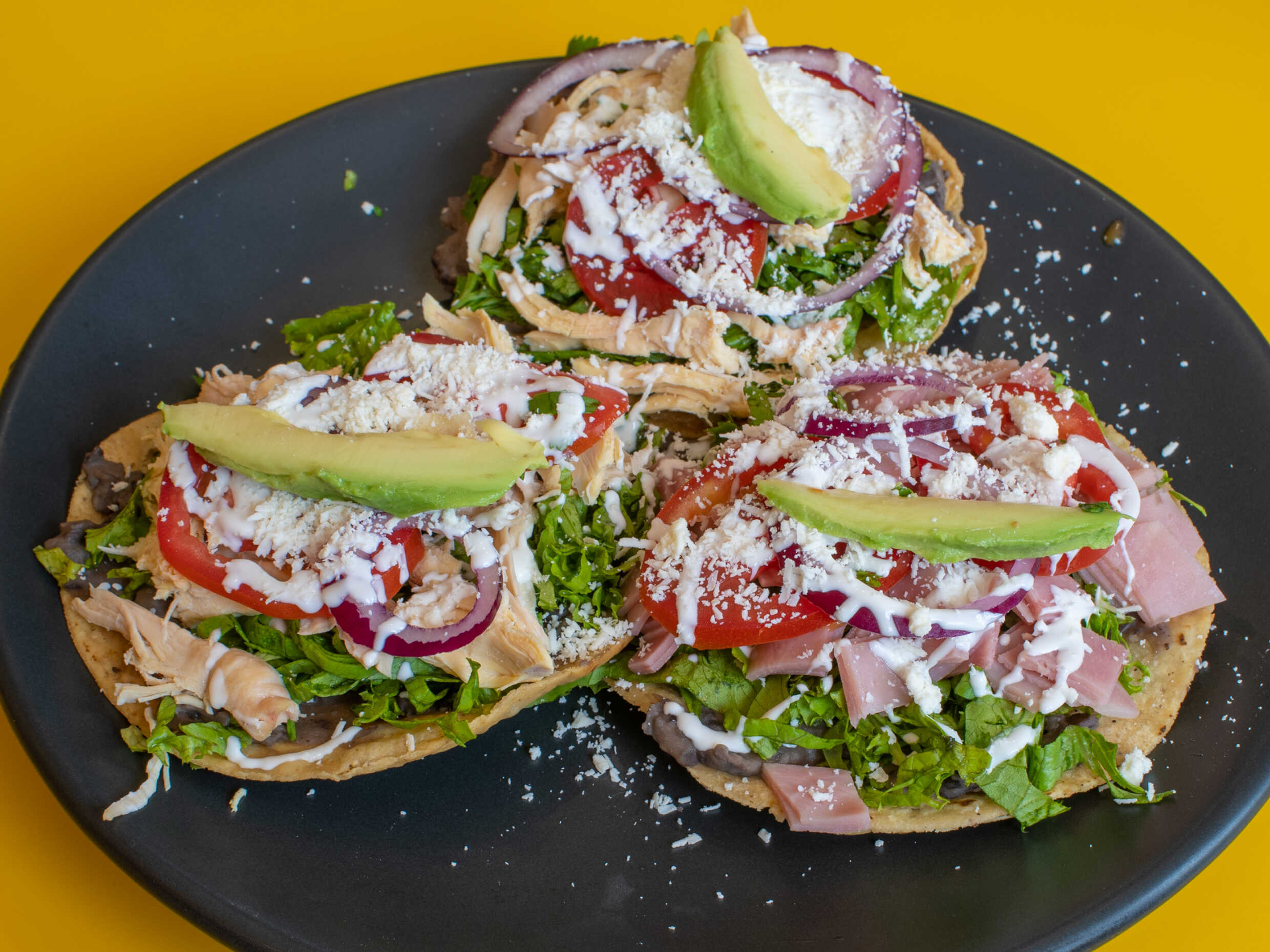 3 tulancingueñas con crema, queso y salsa.