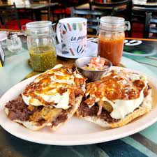Sopecitos, con frijoles refritos, el guisado a elegir, queso crema, y lechuga