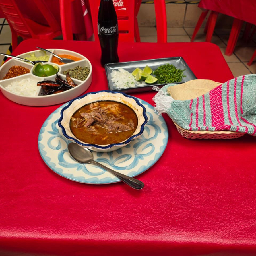 Delicioso Pozole Rojo Acompañando de Lechuga, Rabanos y Tostadas