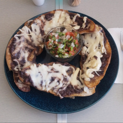 CON BASE DE FRIJOL, SALSA VERDE, CREMA, QUESO RANCHERO, LECHUGA FILETEADA, 180 GRS DE CARNITAS