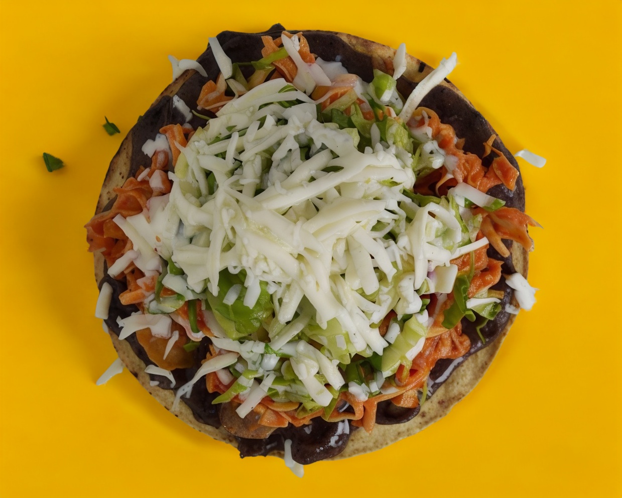 TOSTADA,FRIJOL LECHUGA,QUESO RAYADO,CREMA