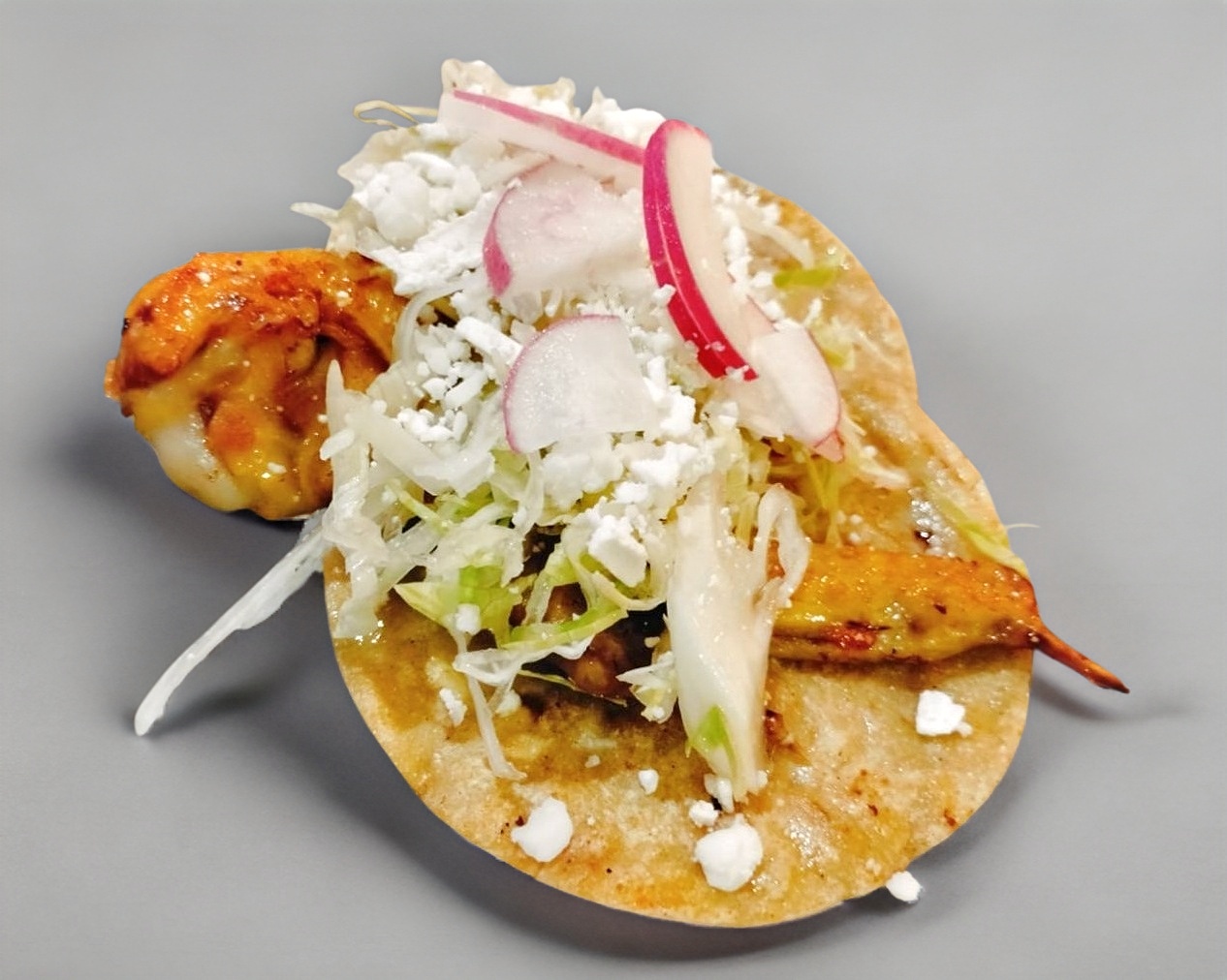 (3 piezas)Tortilla de maíz chalipa con papa, cebolla ,lechuga, queso, pollo y rábano.