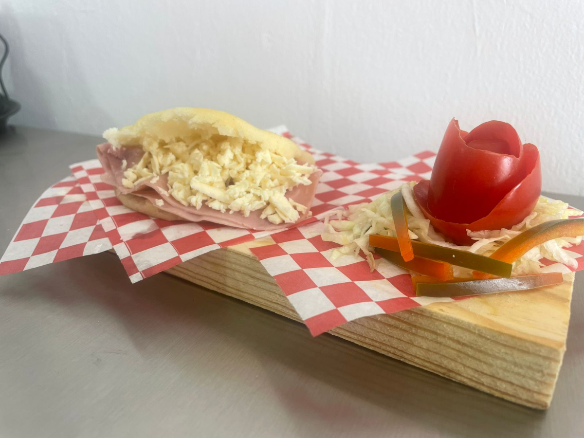 Arepa de harina de maíz sin gluten rellena de jamón y queso Oaxaca.