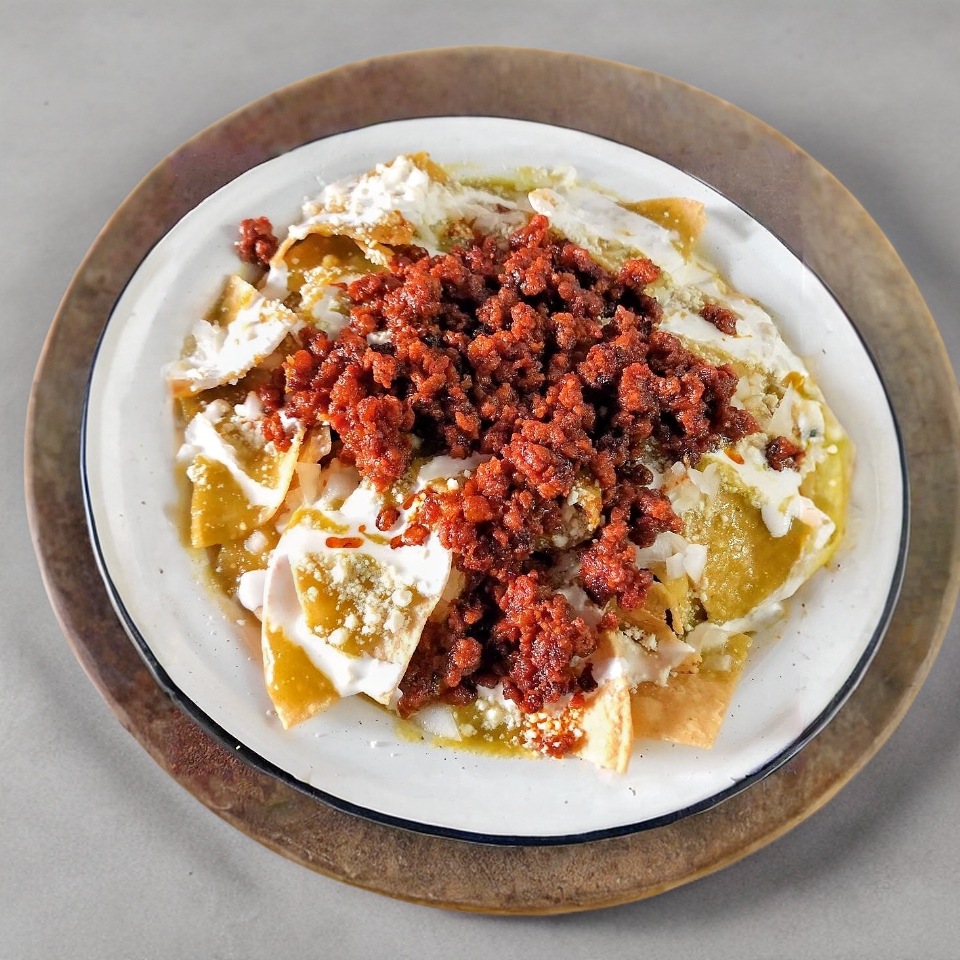Salsa verde, lechuga, crema y queso 35 GR rallado carne embiste y longaniza.