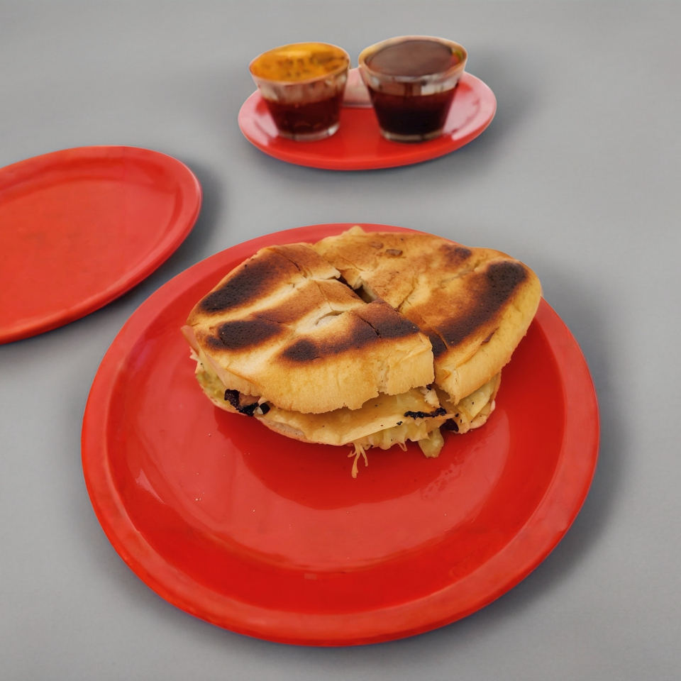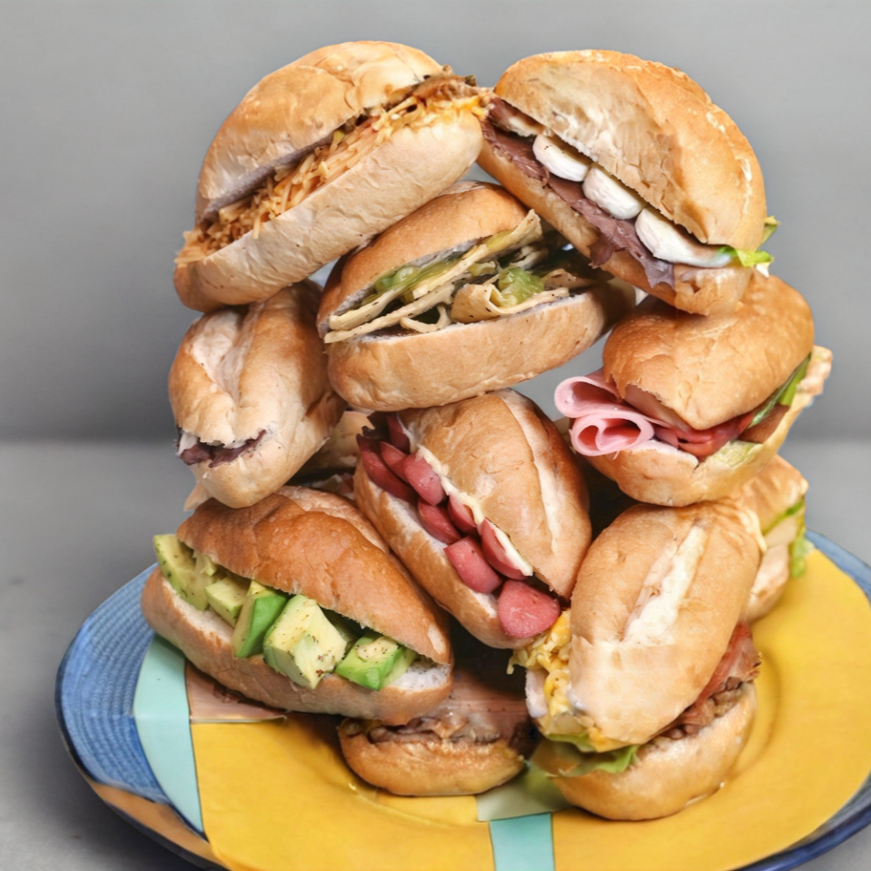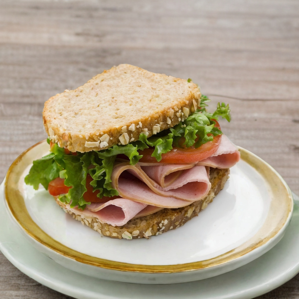 Pan integral, jamón, mayonesa, frijoles, picante, queso amarillo y lechuga.