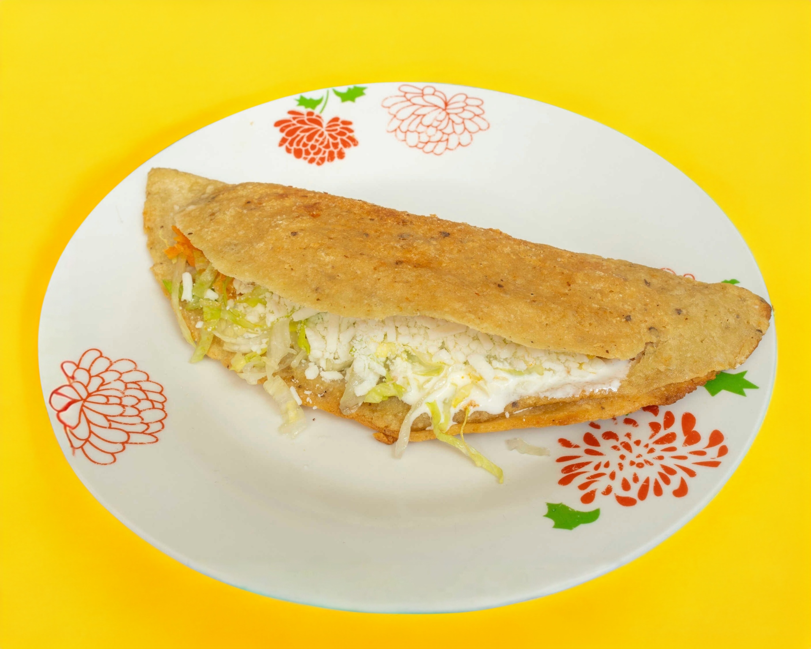 Con lechuga, crema y queso, tipo empanada en aceite.