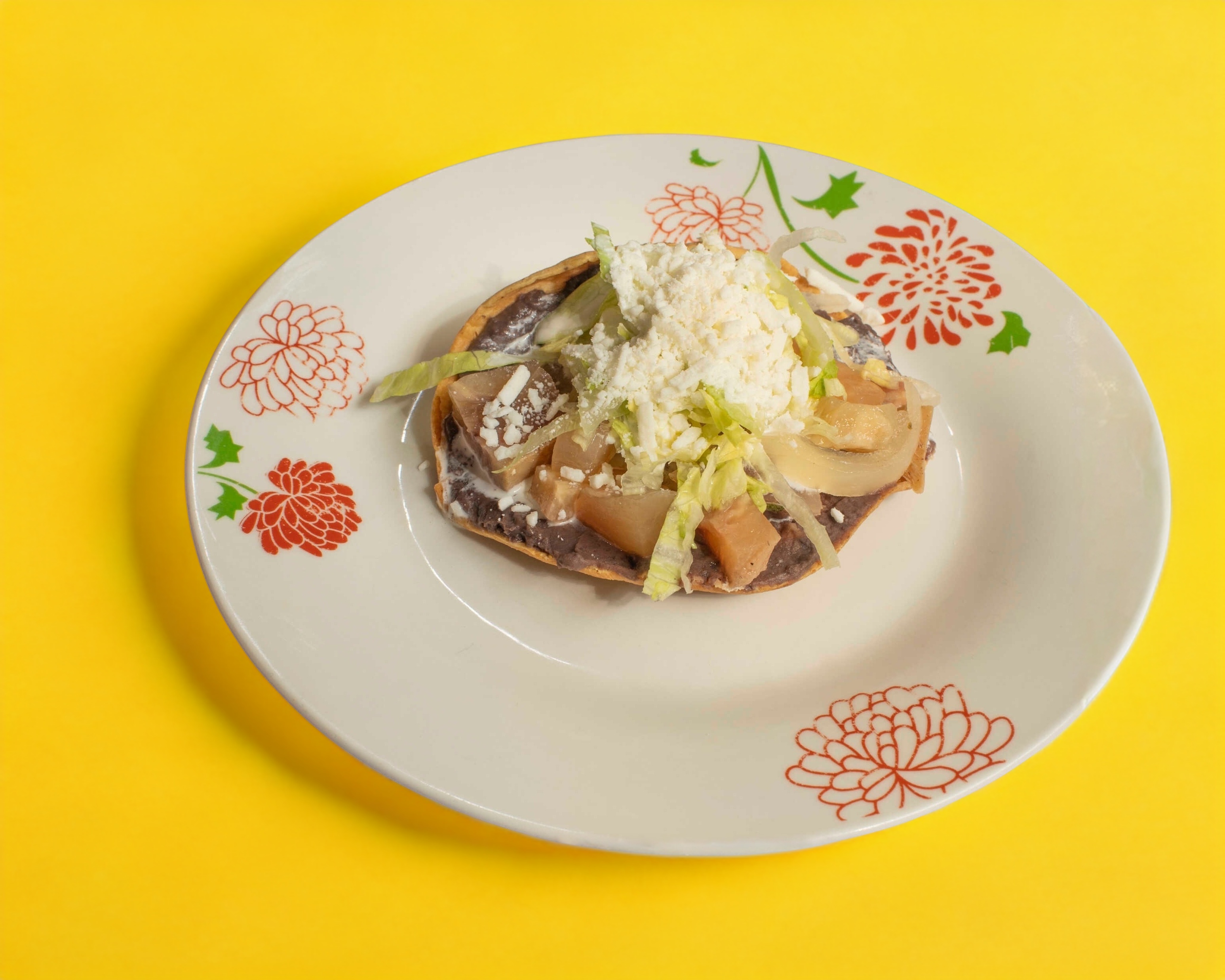Con lechuga, crema y queso, frijoles refritos.