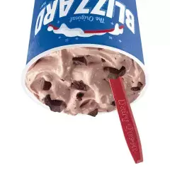 Helado de vainilla DQ® mezclado con chocolate, pedacitos de brownie y choco chunks