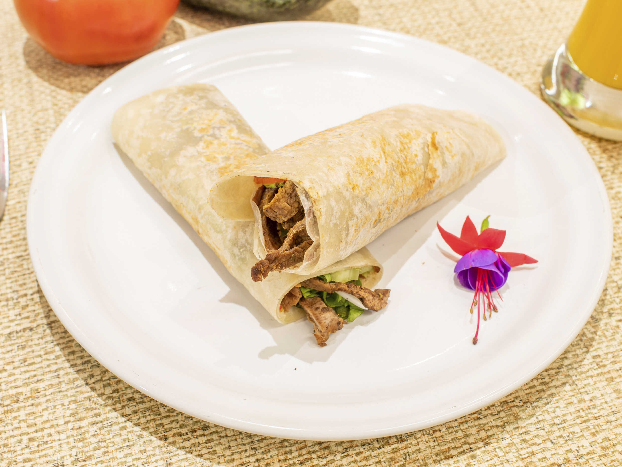 Conectando culturas. Rico burrito que te encantará, en tortilla caserita de harina relleno de frijoles, salsita, lechuga y queso acompañado de papas onduladas