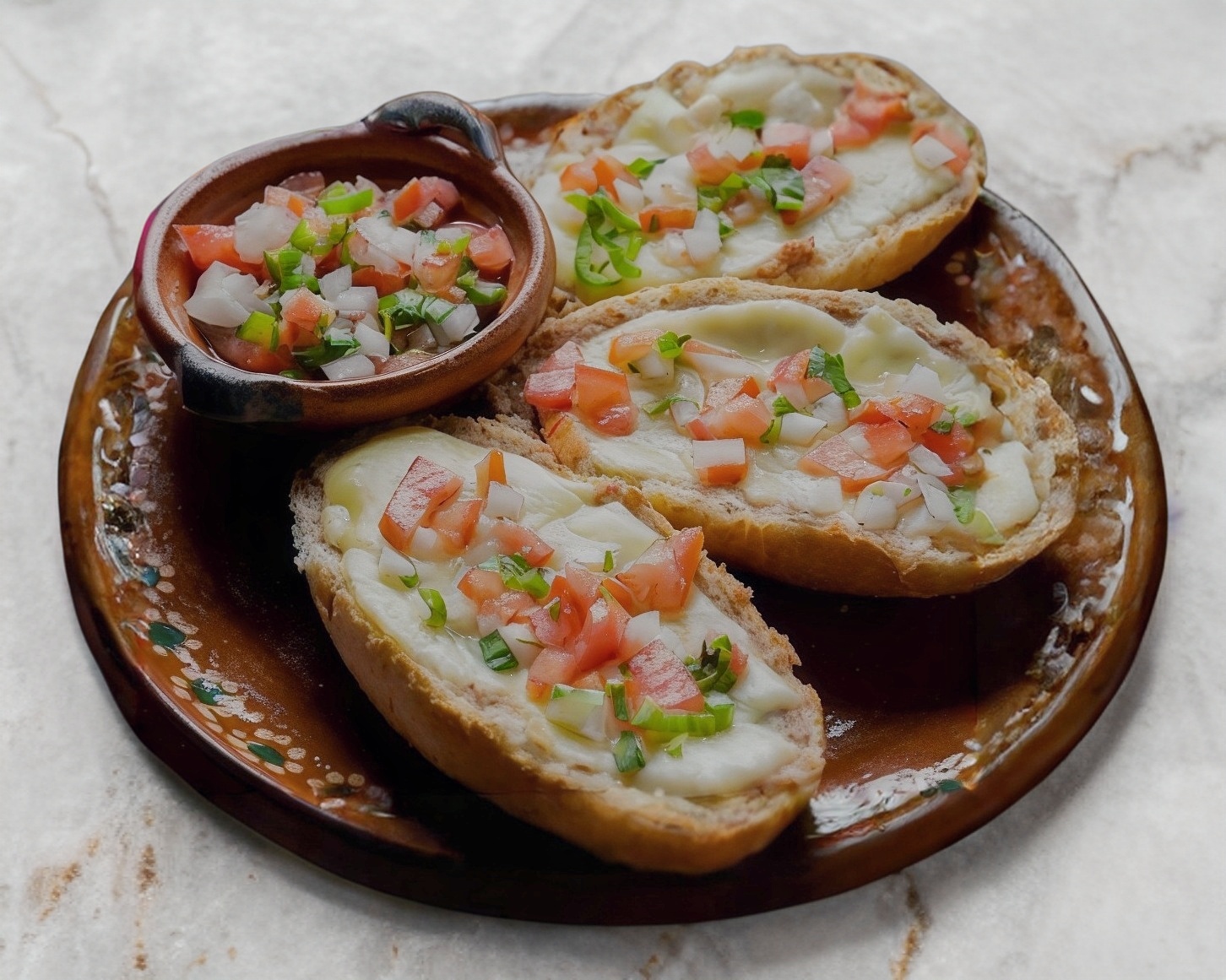 2 Molletes C/frijol, queso manchego y pico de gallo