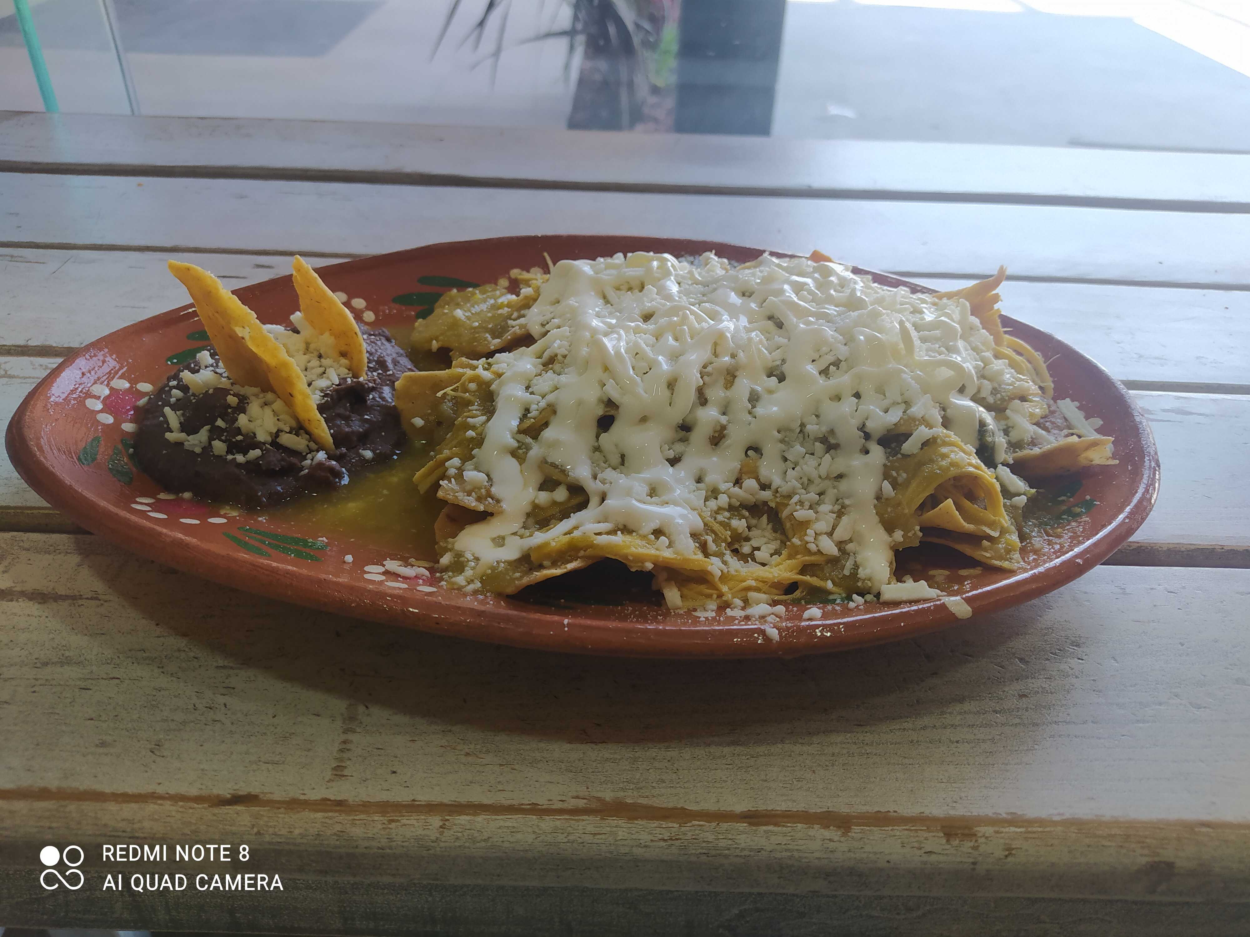 Enchiladas 4 piezas de tortilla de comal, queso manchego, crema, cebolla y cilantro.