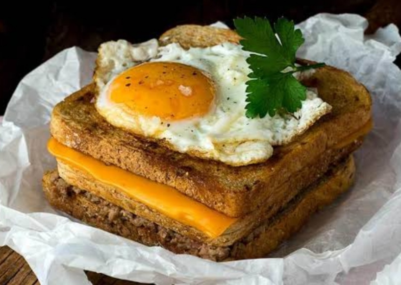 1 le de Huevos frito sobre sandwich de jamón y queso.