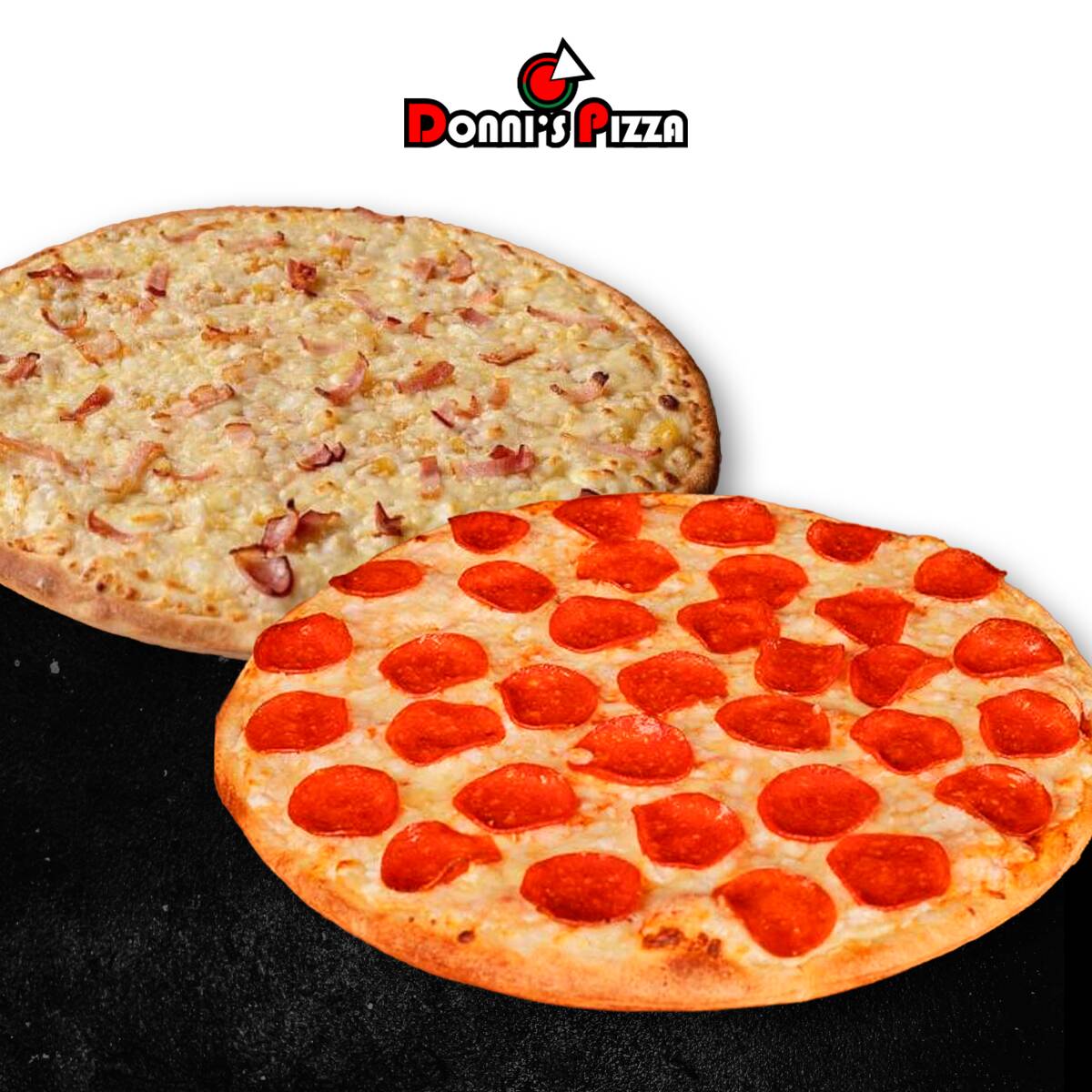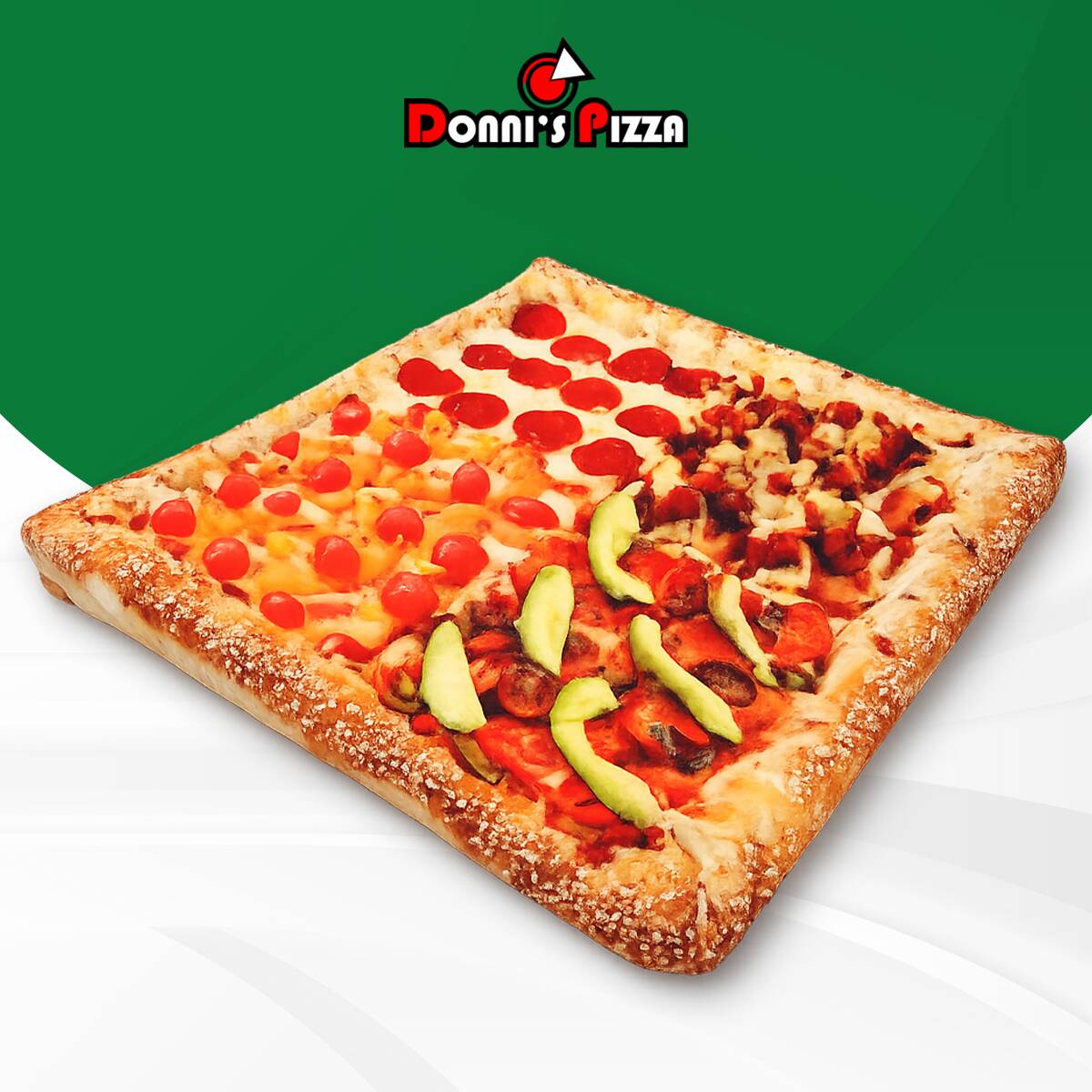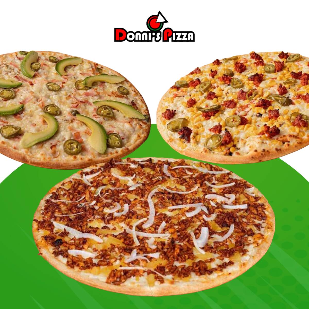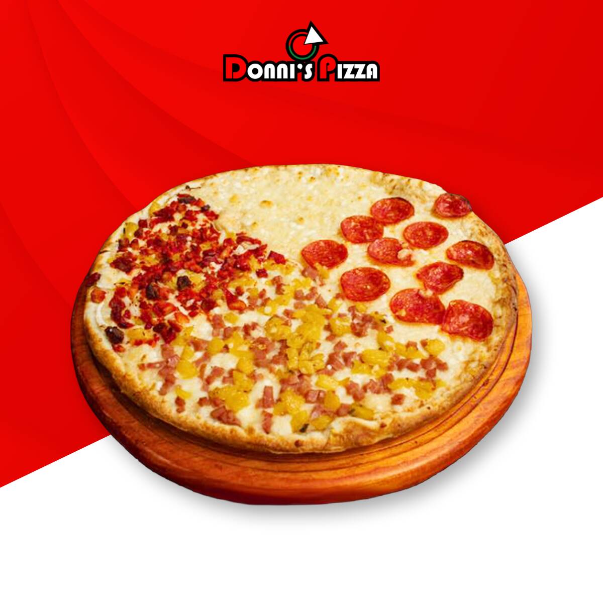 4 sabores en una pizza. Combina entre: Pastor, Clásica, Italiana, 3 Quesos, peperoni, Hawaiana, Salchicha, Champeroni o Hawaiana Donni's