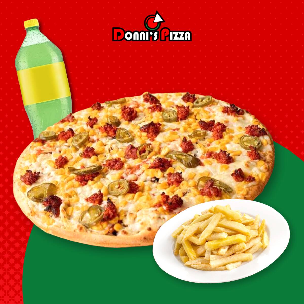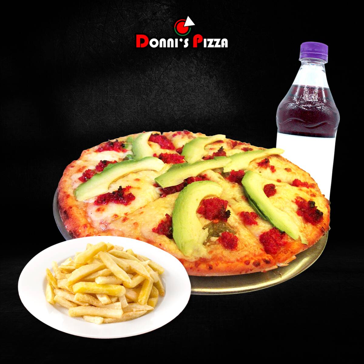 1 pizza chica de cualquier especialidad + 1 orden de papas a la francesa + 1 refresco de 600 ml