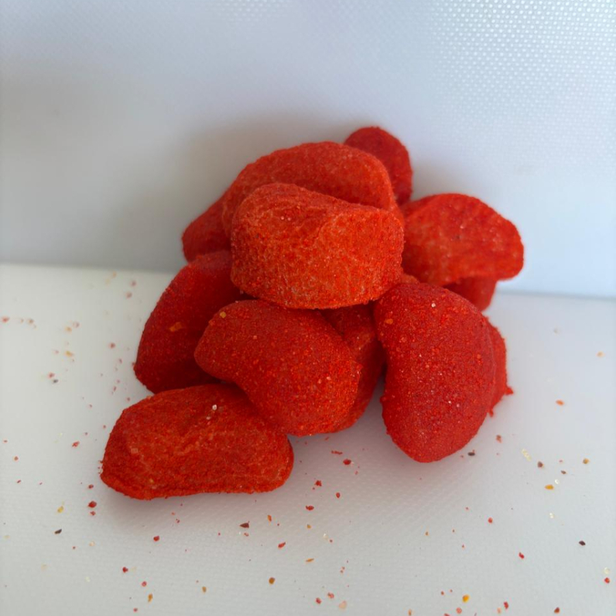 Deliciosa gomita sabor mango con un toque de chilito, en bolsa de celofan con un peso de 100gr