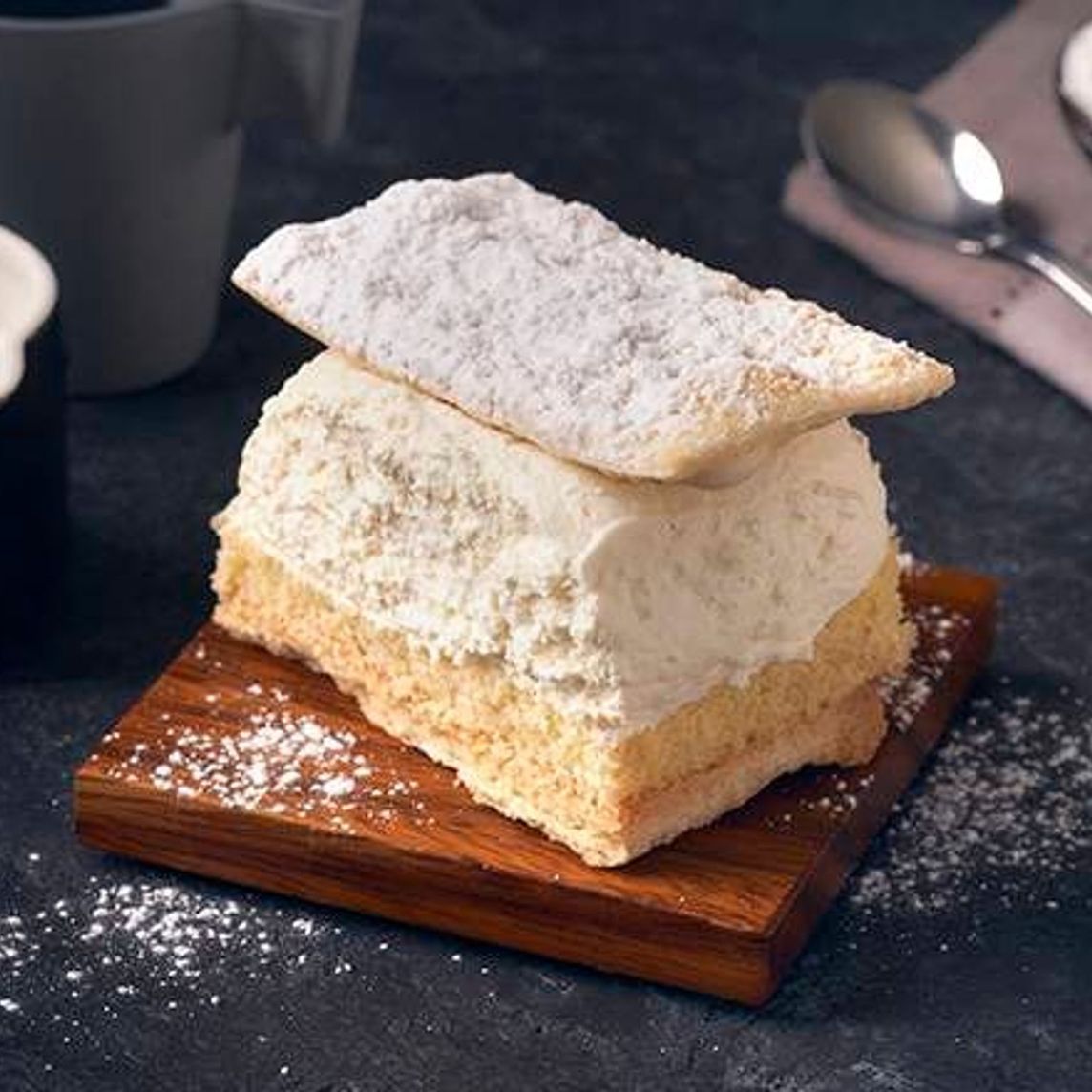 Exquisita galleta de pasta hojaldre rellena de crema chantilly y espólvoreada con azúcar glass. (80 g)