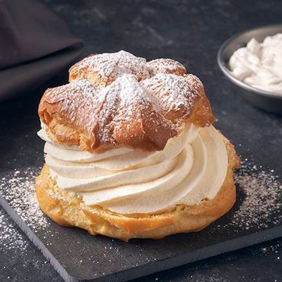 Postre de pasta choux, relleno de rica crema chantilly y azúcar glass. (150 g)