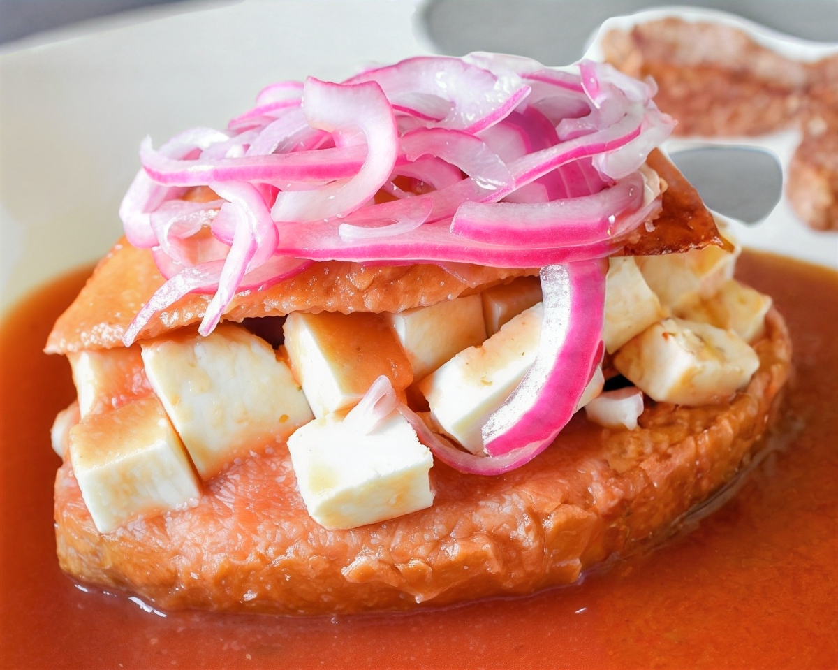 Elaborado con tortilla de comal relleno de frijol. SERVICIOS que incluye: cebolla desflemada morada, cebolla desflemada blanca, limones, salsa picante, salsa de jitomate, col.