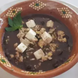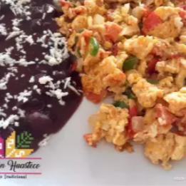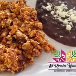 Huevos revueltos ahogados en frijoles de la olla con epazote, queso,acompañado de Enchiladas combinadas (10pz)