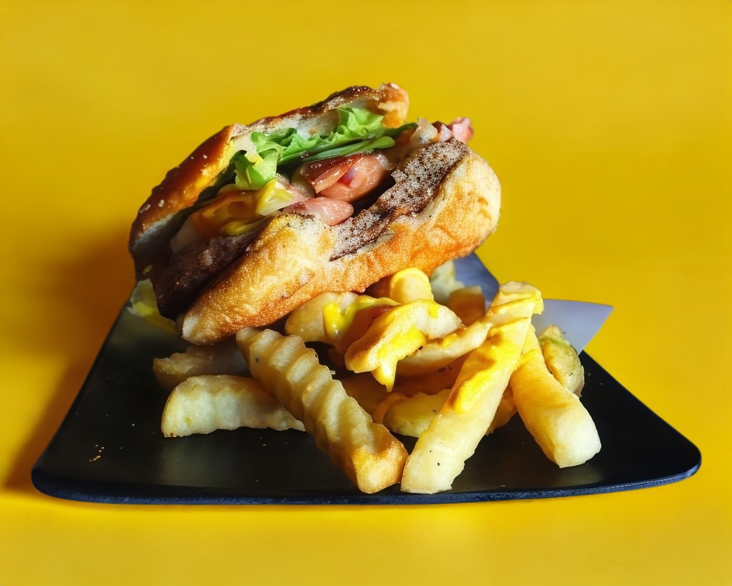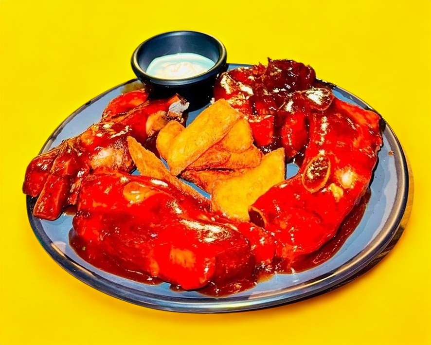 Salchica en forma de pulpo acompañada de papas ala francesa