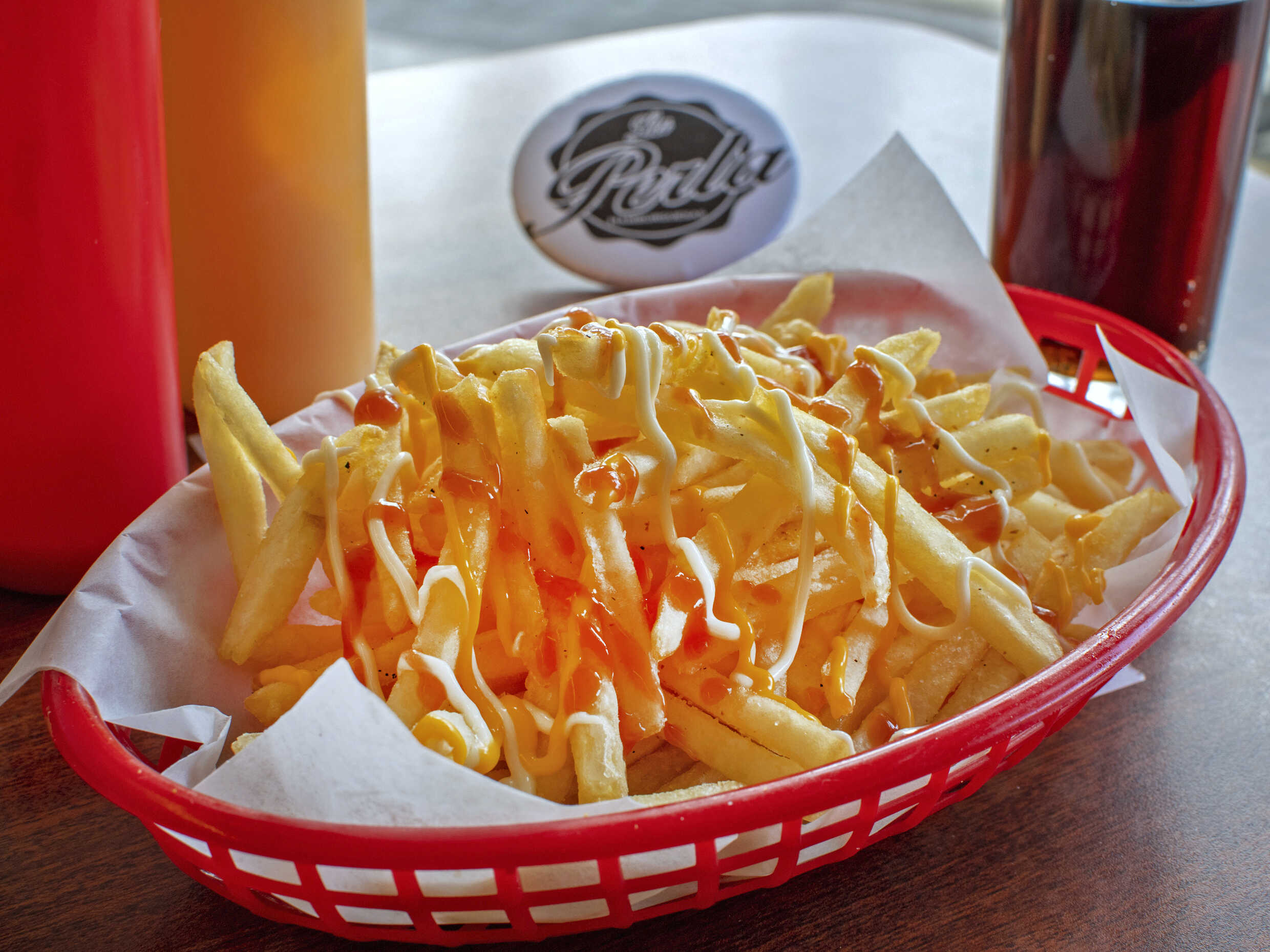 Piña en almibar cocida, triple carne de res, salchicha,tocino y doble jamon con queso oaxaca y americano. Lleva Mayonesa, catsup, mostaza jitomate cebolla jalapeño y aguacate