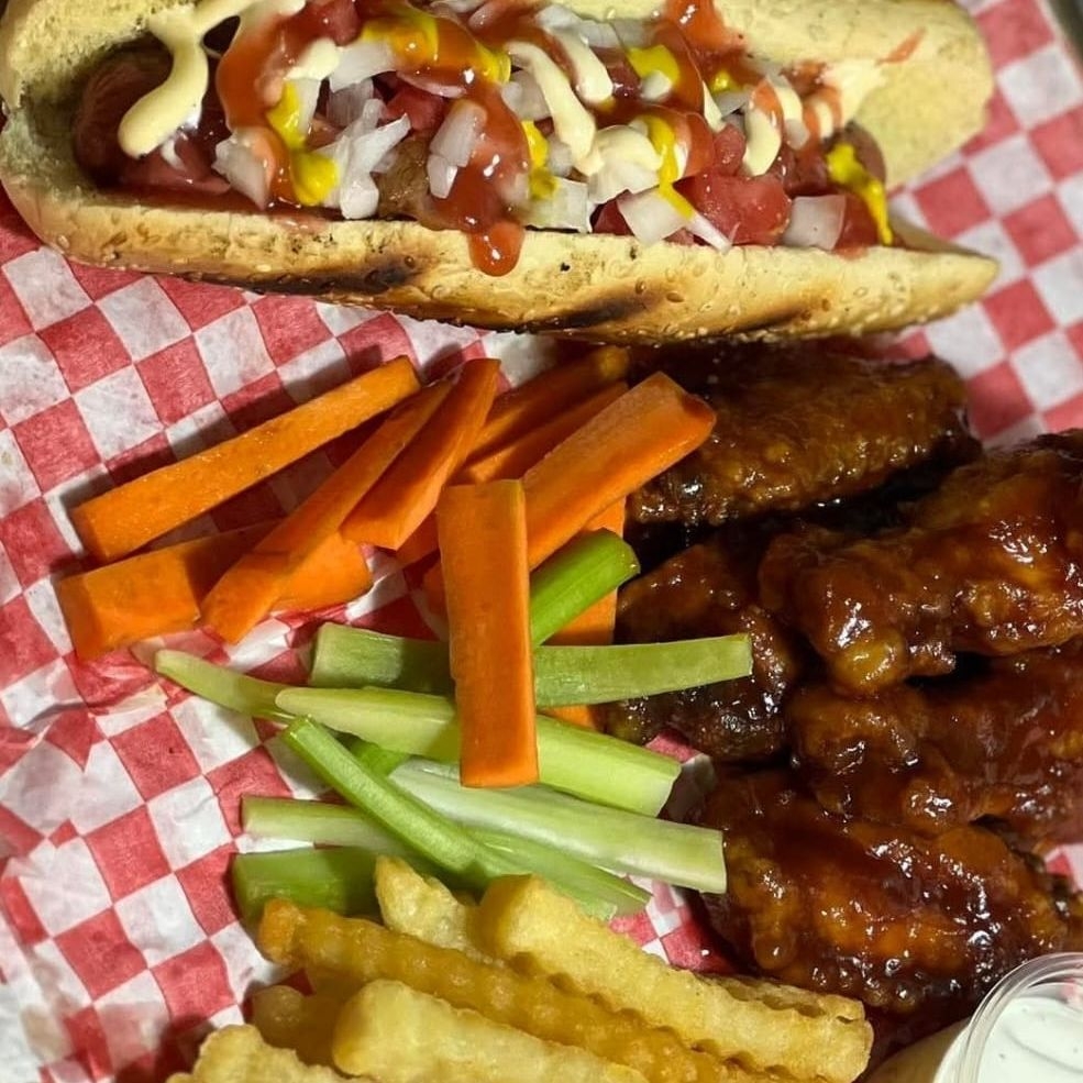 Hot Dog Especial*1 + Media Orden Papas a la Francesa*1 + Alitas BBQ (6pzs)*1