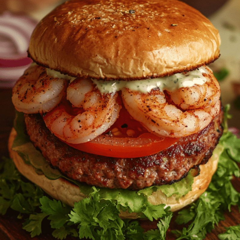 Aderezos (catsup, mayonesa y mostaza), lechuga, jitomate, cebolla caramelizada, carne de res, camarones, jamón, tocino, mix de quesos (manchego, mozzarella y Oaxaca)