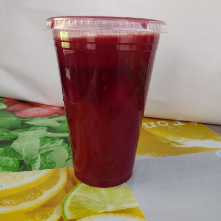 Jugo de naranja, zanahoria y betabel vaso de plástico medio litro.