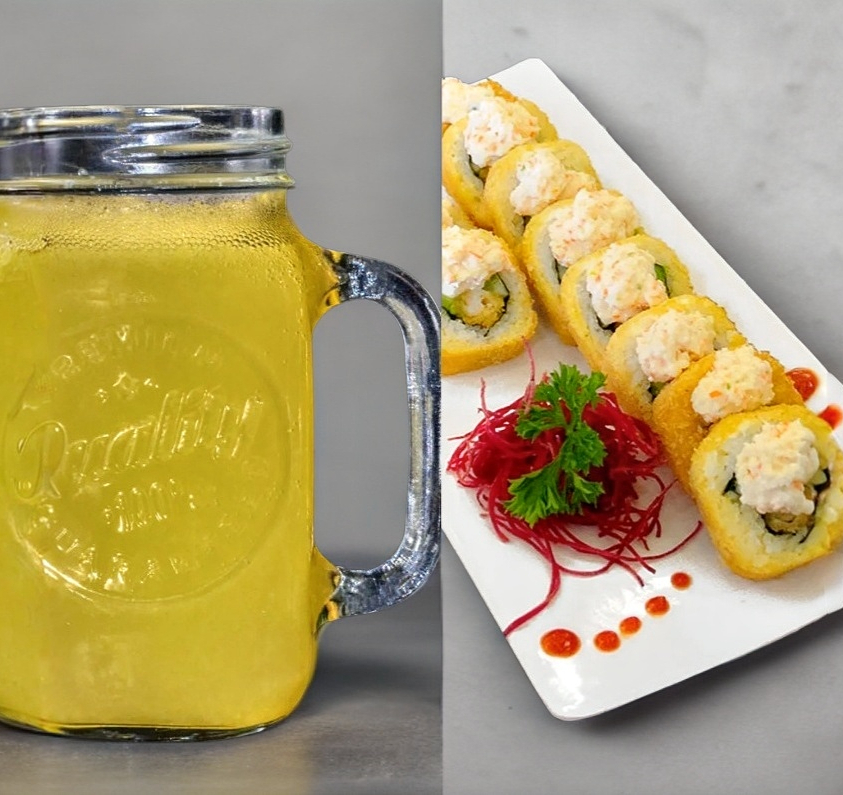 1 rollo a elección + 1 orden kushiague de queso manchego + 1 yakimeshi mixto + 1 naranjada o limonada de 455ml o refresco.