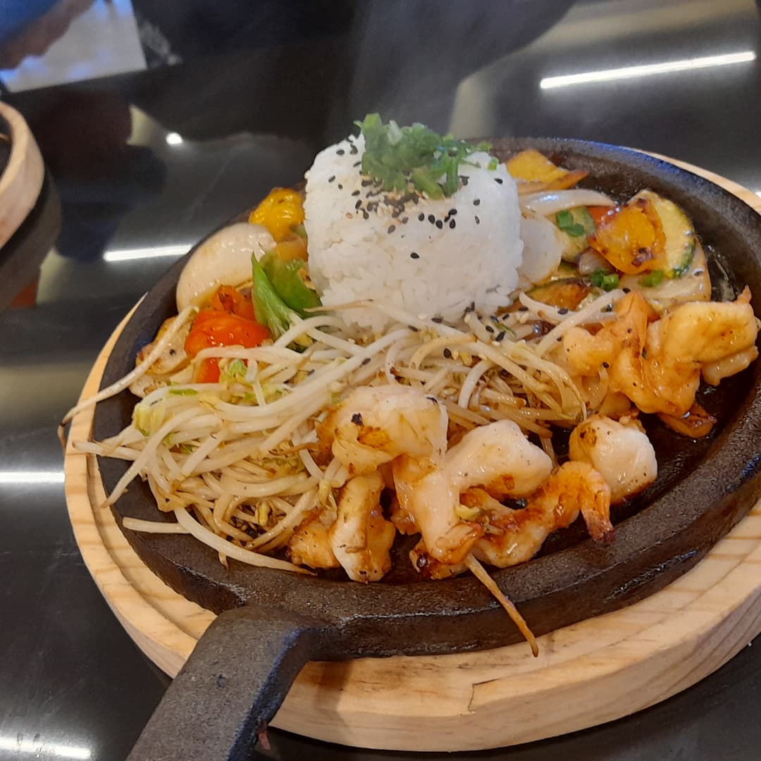 Pollo, res, camaron 160 gr verduras asadas a la planca con proteina