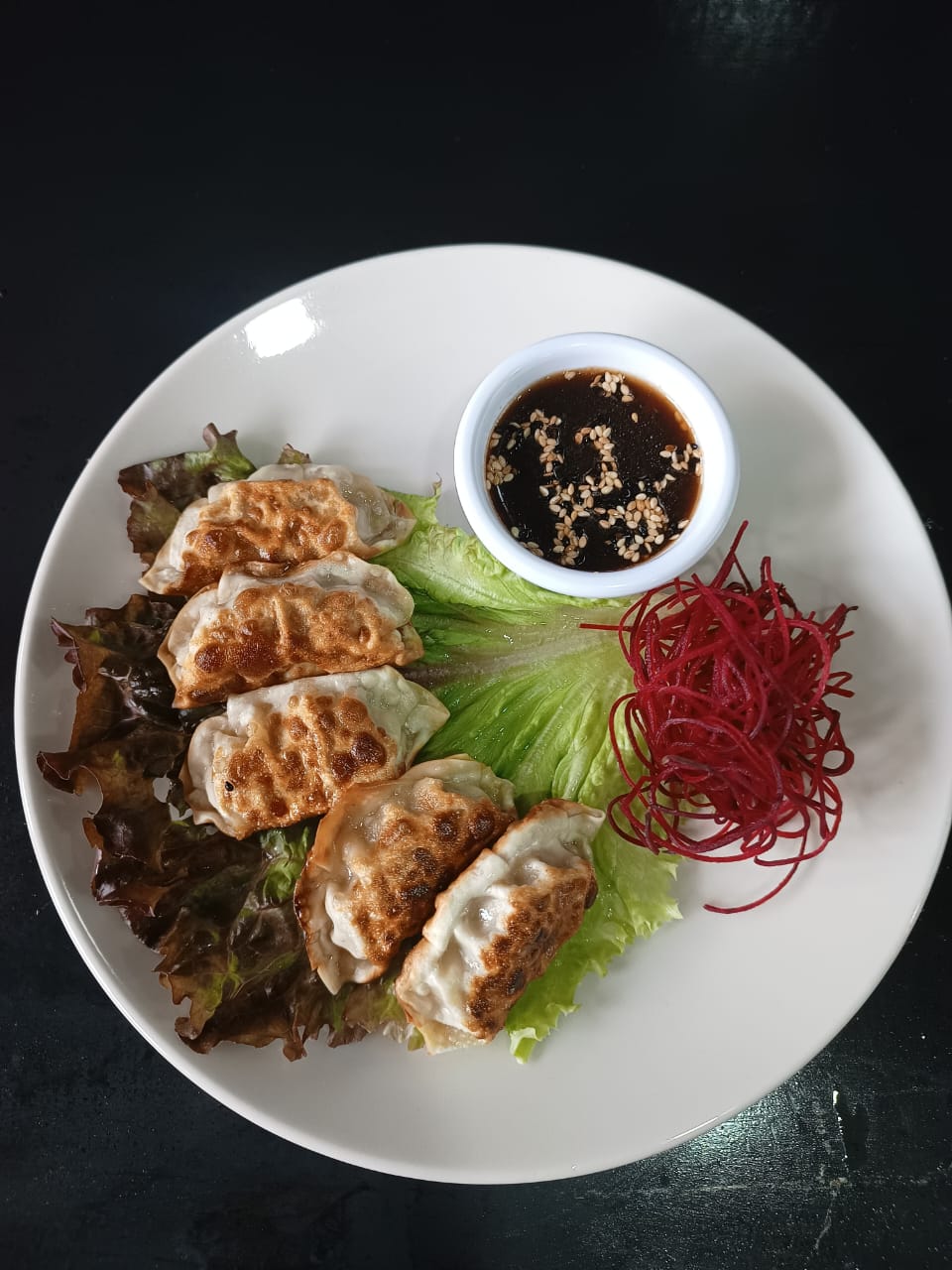 Pepino aguacate, queso crema, rib eye, queso manchego, chile toreano, bañados en salsa de dulce