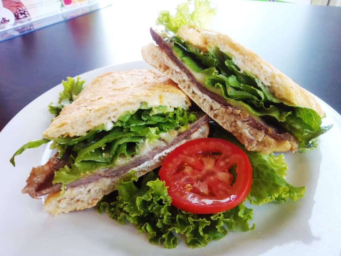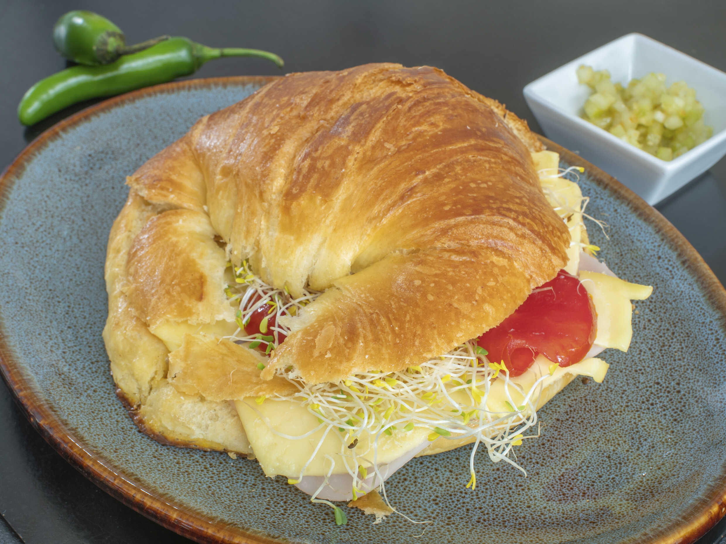 Pechuga de pavo, queso manchego, jitomate, germinado de alfalfa.