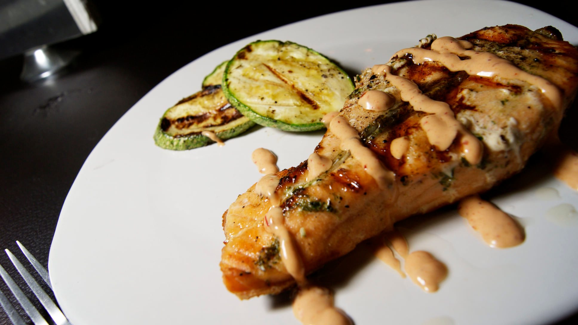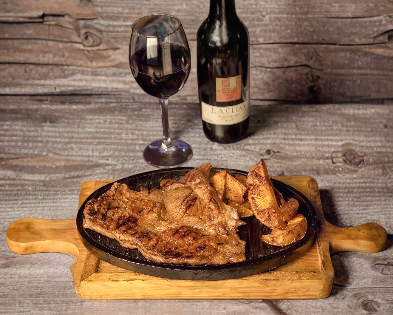 A las brazas marinado con salsa de pimientos molidos y especies, y guarnición de perejil frito.