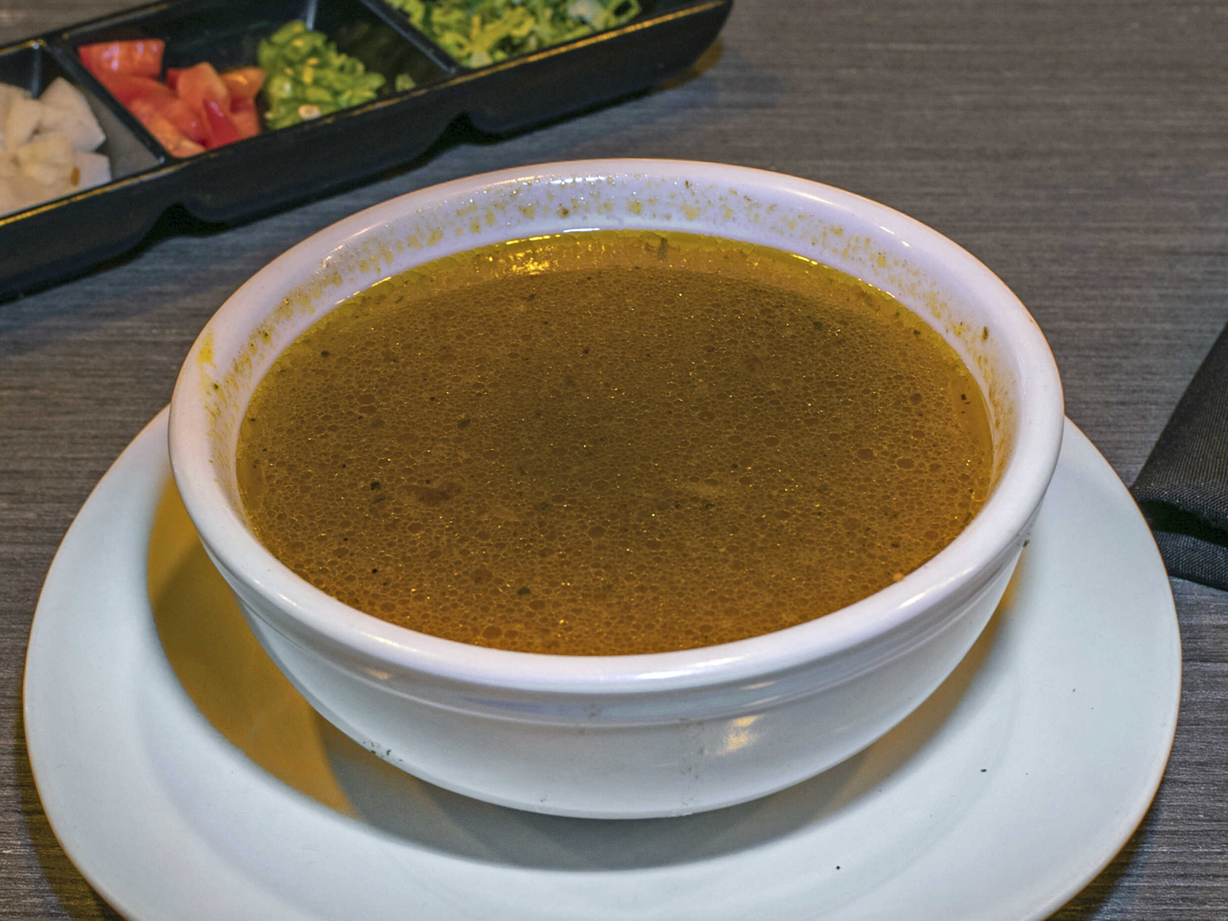 Sopa de 400ml, guisado, salsa verde, salsa roja, limones, frijoles y agua del día sabor a elección de 375ml . (Platillo personal)