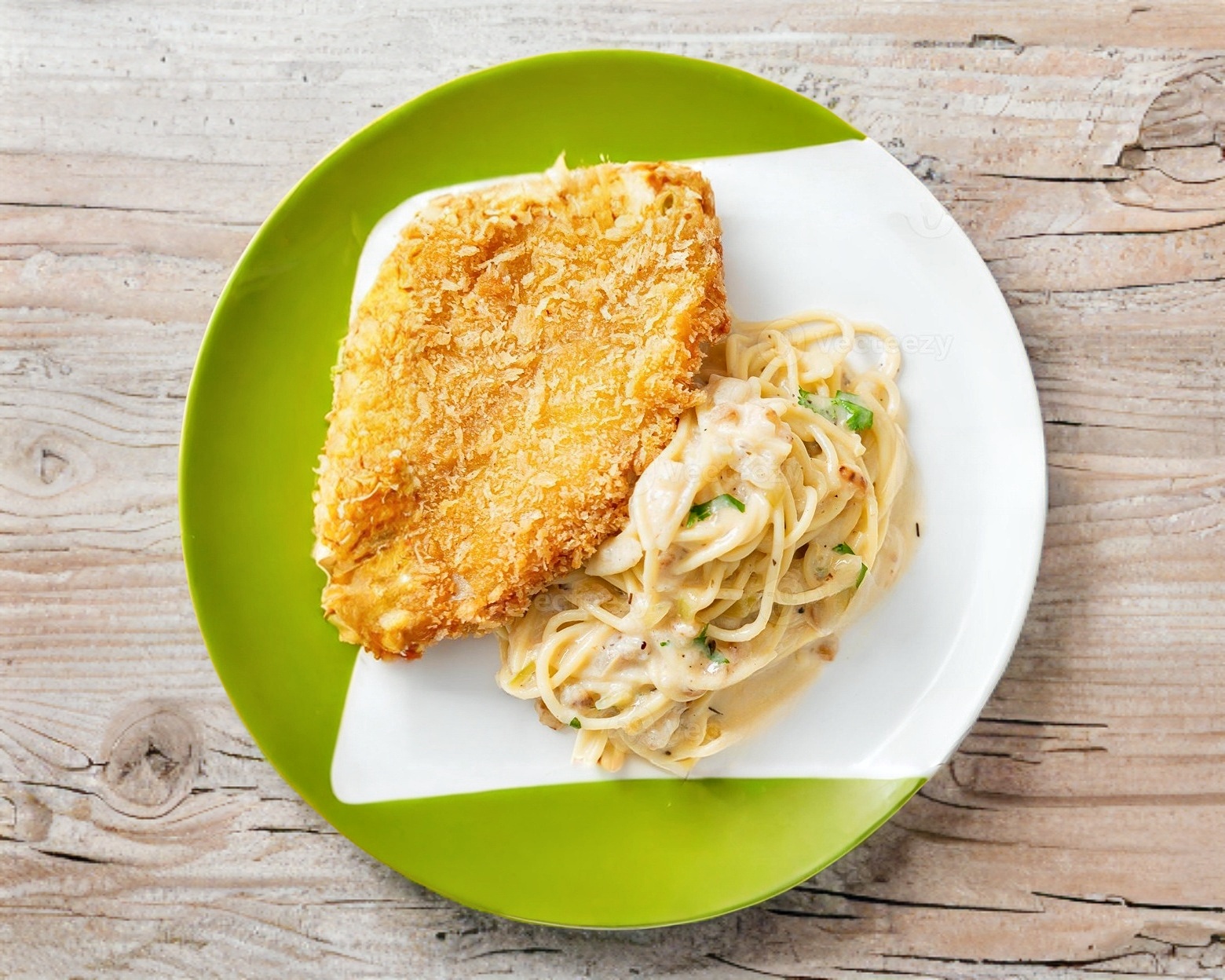 Espagueti; arrachera, pollo o pescado; papas a la francesa.