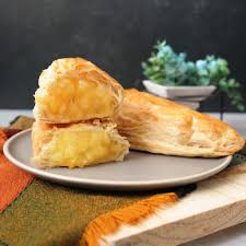 La pasta es semihojaldrada, la cual no se desmorona y tiene un sabor delicioso. Se estira, se rellena y se hornea.