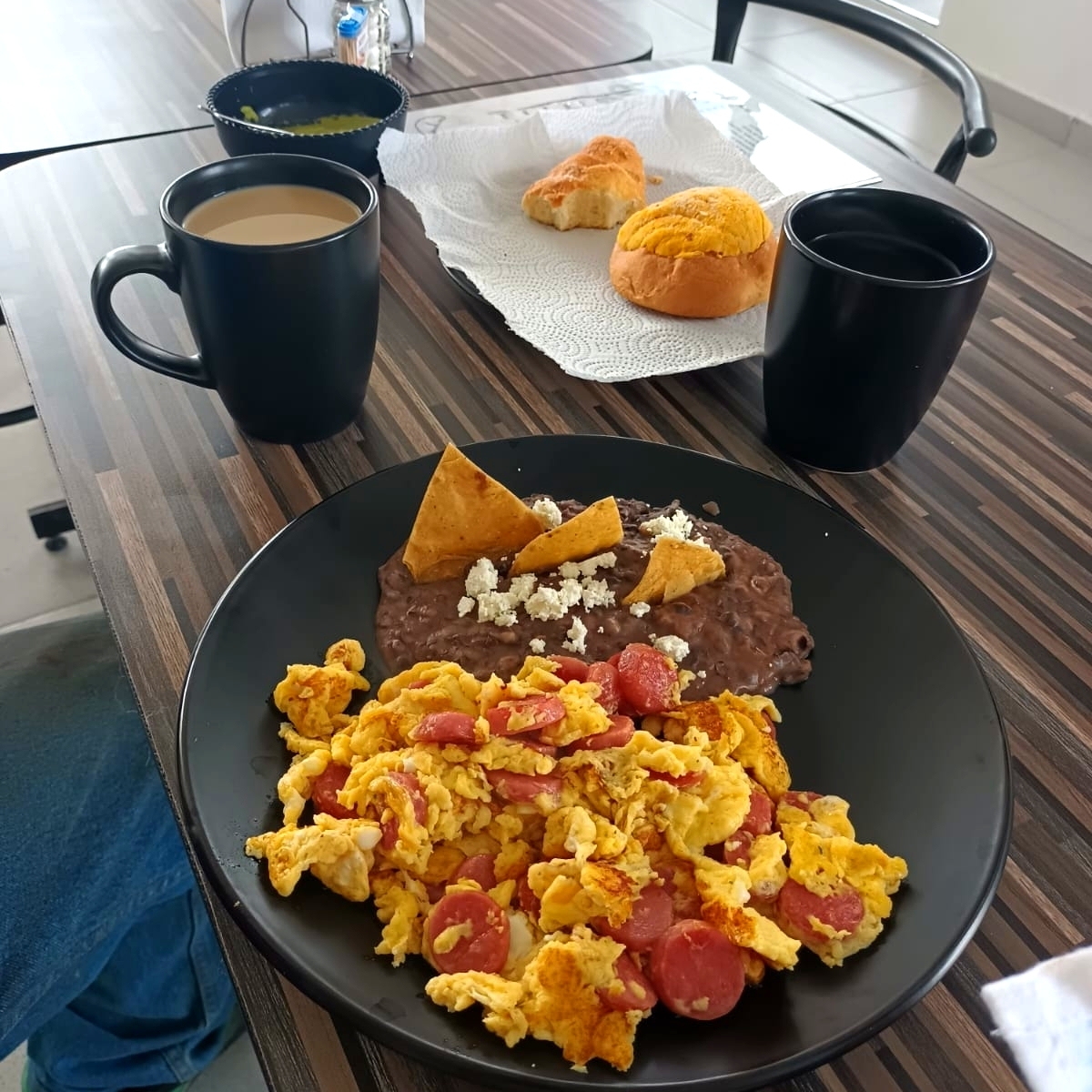 COMBO DE HUEVO AL GUSTO, CON FRIJOLES, CAFÉ, Y PAN DE DULCE, INCLUYE 5 TORTILLAS Y SALSA DE MESA PARA ACOMPAÑAR EL DESAYUNO