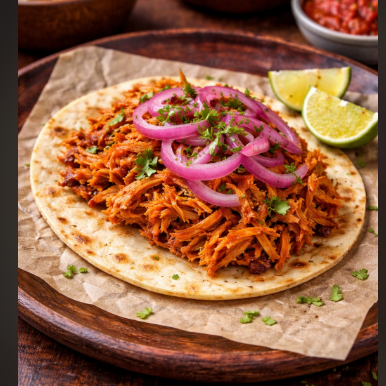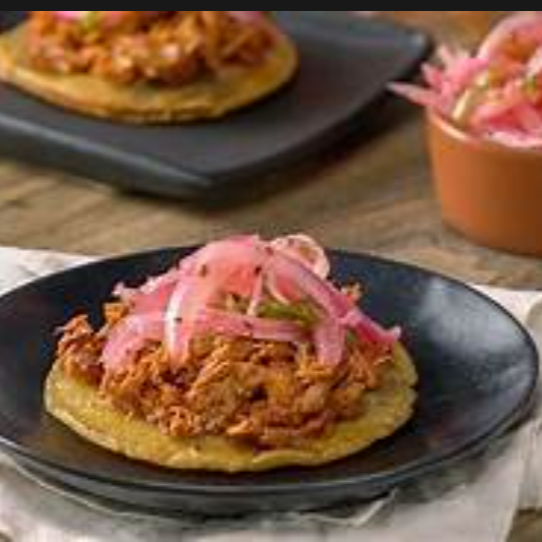 Panucho relleno de Frijol con Cochinita Pibil