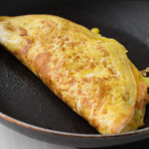 Delicioso omelette con queso manchego, frijoles refritos, café o agua del día y bolillo.