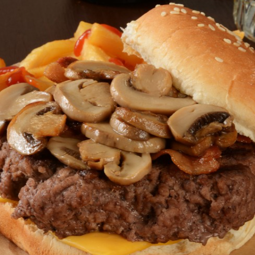 carne, queso amarillo, queso manchego, jamón, lechuga y champiiñones)