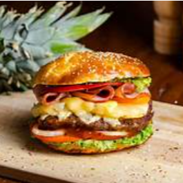 La retro hamburguesa Hawaiana con salchicha, jamon